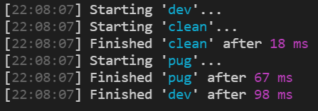 dev시작 -> pug 시작 -> pug 끝 -> dev 끝