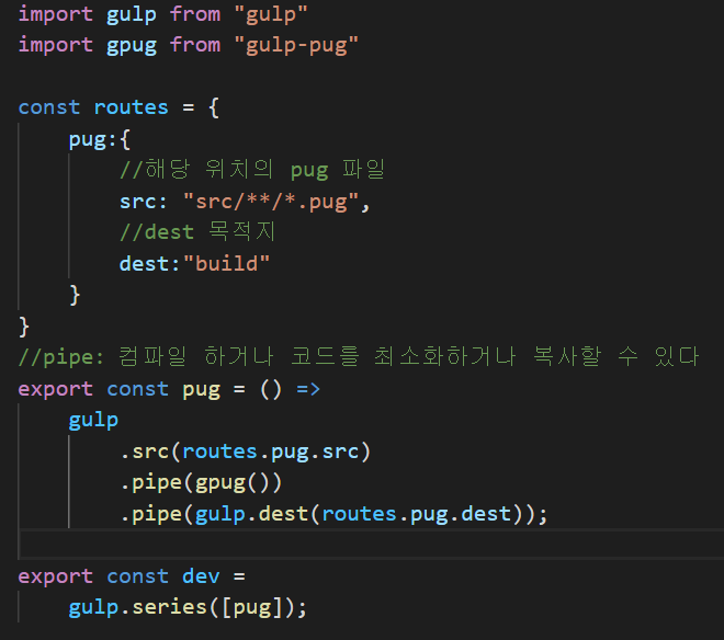 gulp-pug -> pug 템플릿을 컴파일 해준다